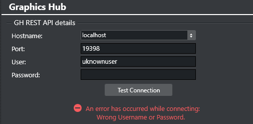 • Use the Test Connection button to verify the connection to a Graphic Hub database, with the given credentials.
