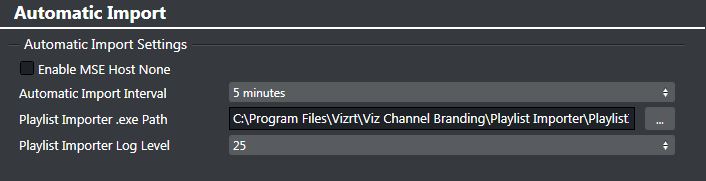 • Playlist Importer Log level: Sets the log level of the Playlist Importer. See the Playlist Importer’s Startup Parameters.