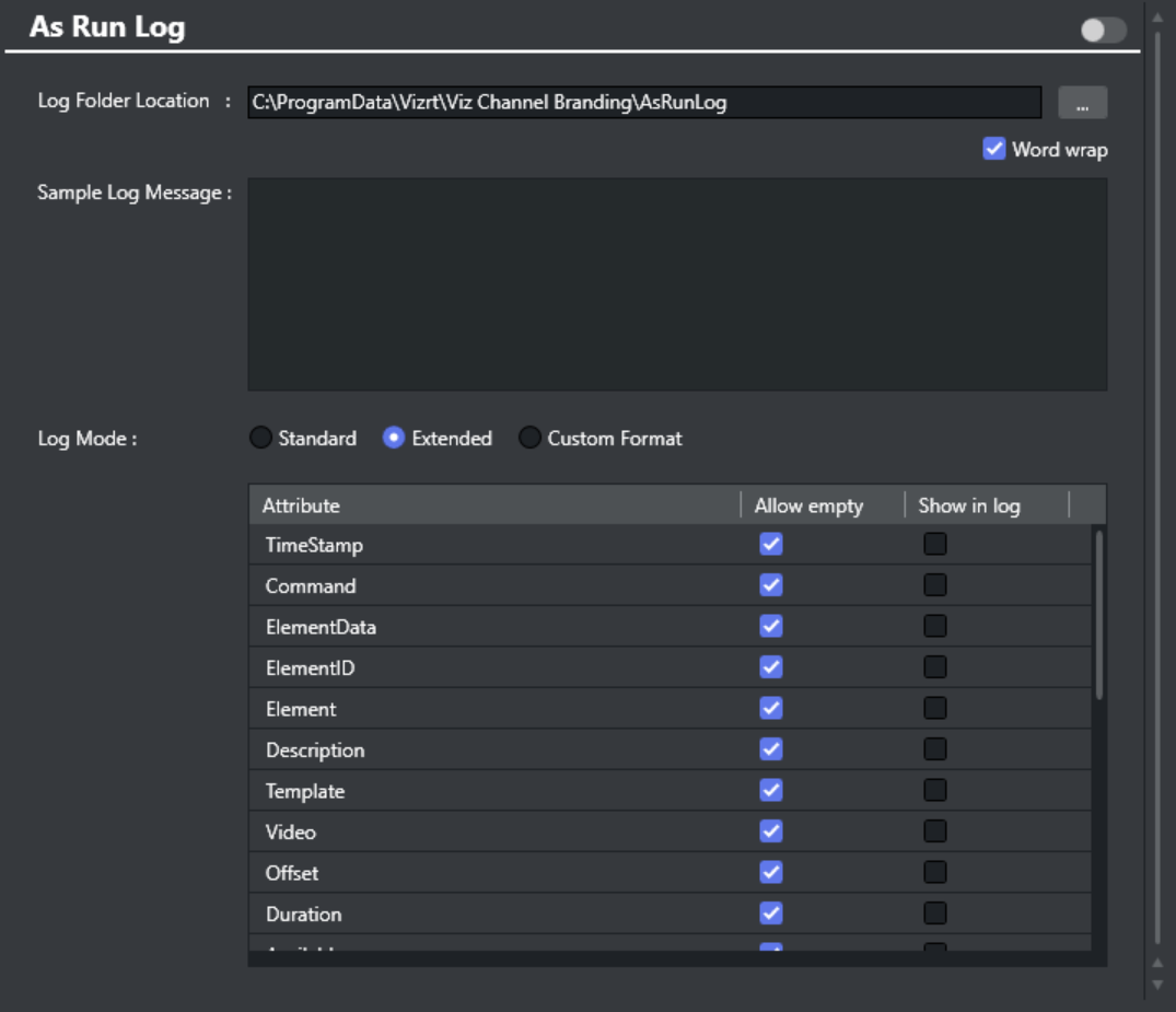 Use Extended or Custom Format when there are As Run logging requirements not covered in Standard mode.