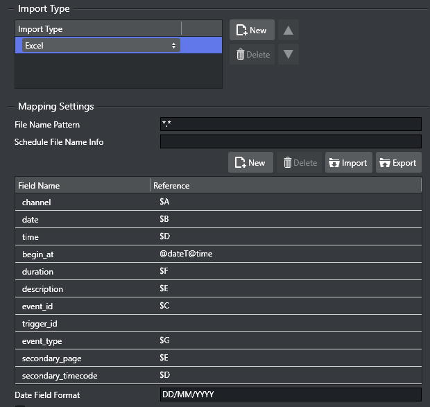 The Excel sheet column is your Reference in the mapping table. For example, for column A set $A, and so on.