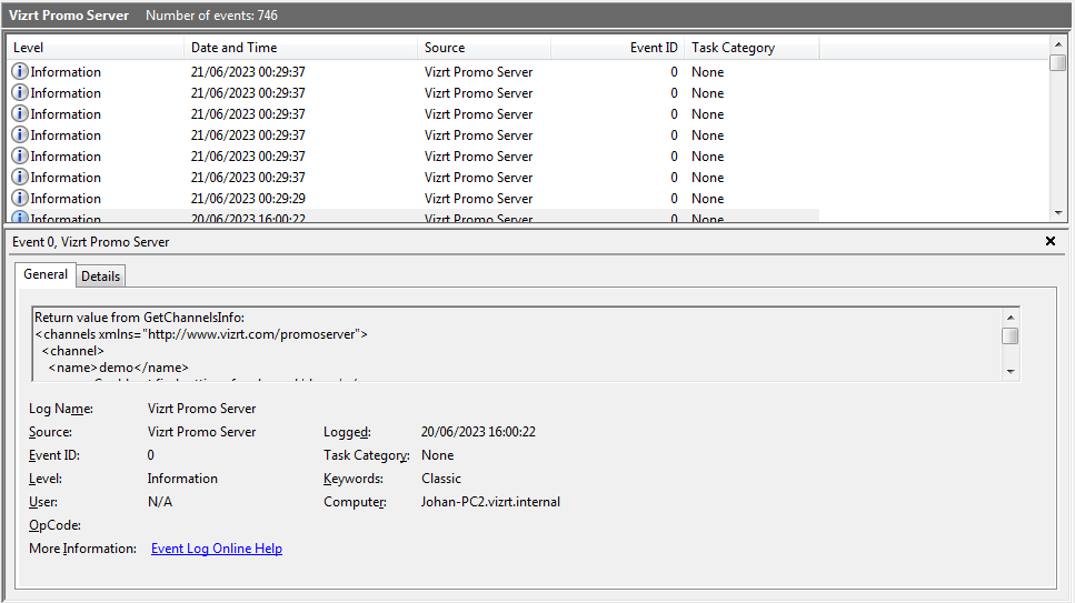 Select and click the service process log you wish to view. In this example, Vizrt Promo Server, as seen in the screenshot below: