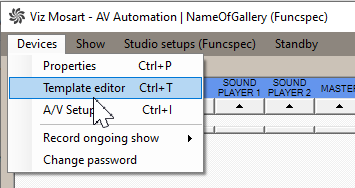 • From this view you can select the required template/template variant (with Template > Select) and work with the device settings as described in Template Device Functions.