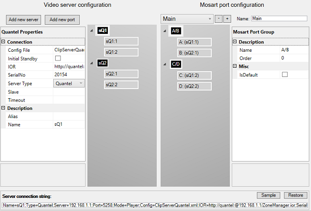 The example above presents a Quantel server (as selected from the Server Type drop-down menu), sQ1, and one other server (sQ2), which could also be a Quantel server.