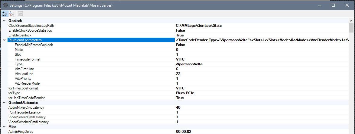 In Av Automation, you can change properties related to the Plura timecode reader card.