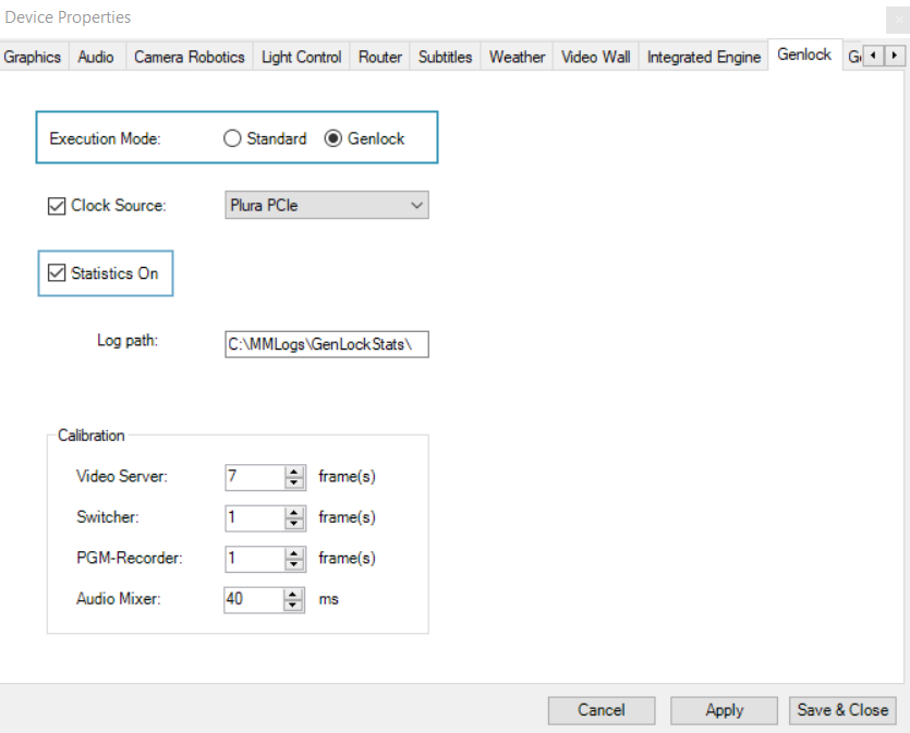 For Viz Mosart to function in frame accurate mode, a calibration process has been created to better understand the timings associated with the gear being operated.