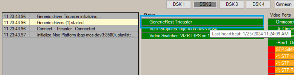 If no heartbeat is configured, Mosart only checks the connection once and shows the correct status (Green for OK, Red for not OK).