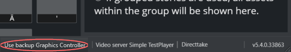 At the bottom right corner of the Viz Mosart UI is the text: Use backup Graphic Controller.