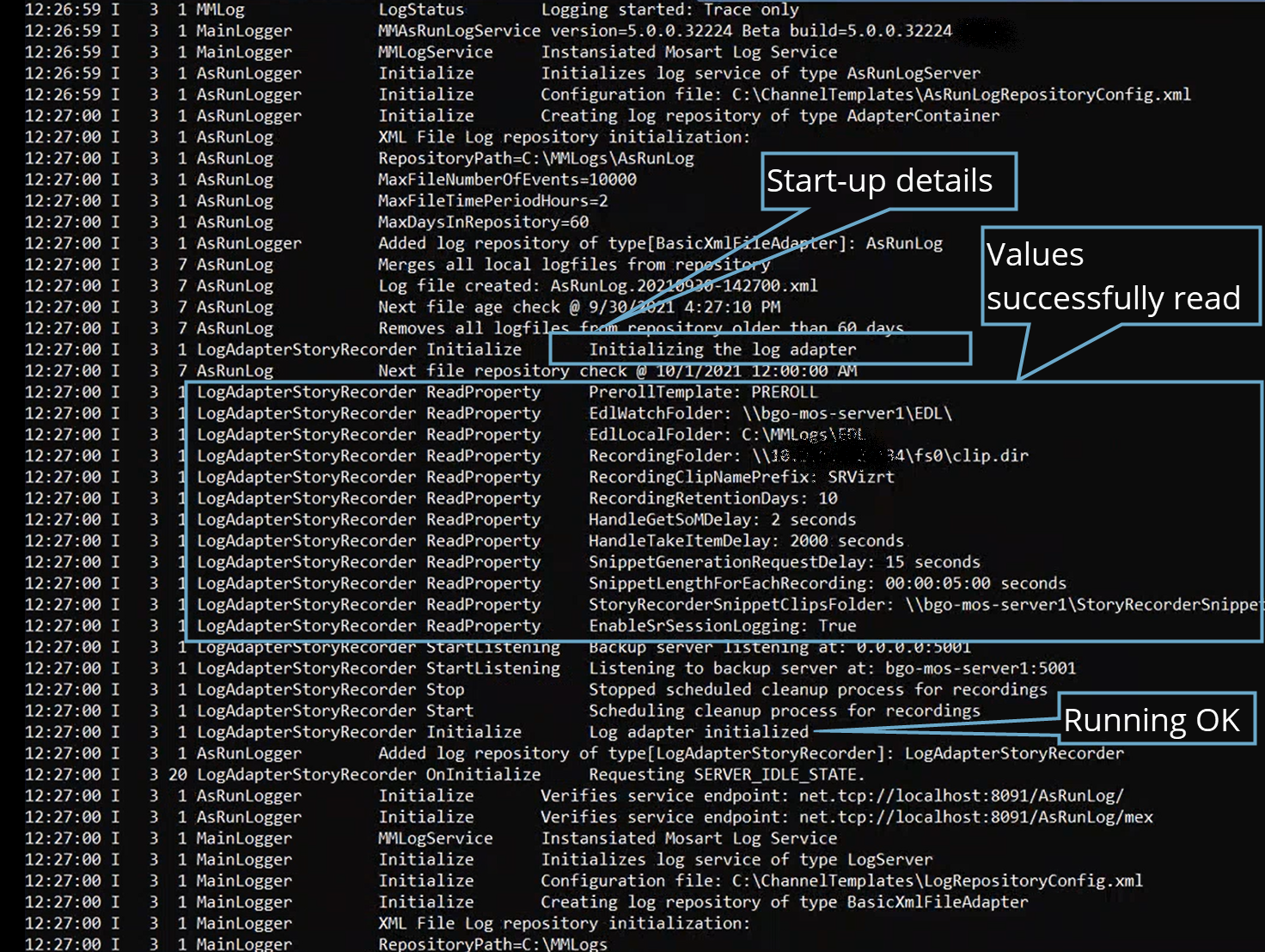 6. In %ProgramFiles(x86)%\Mosart Medialab\Mosart Server\, start the Mosart as-run service, MMAsRunLogService.exe as a console.