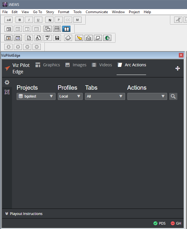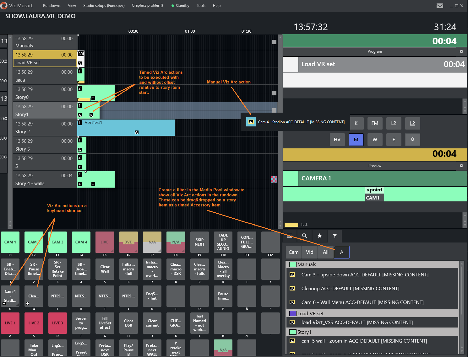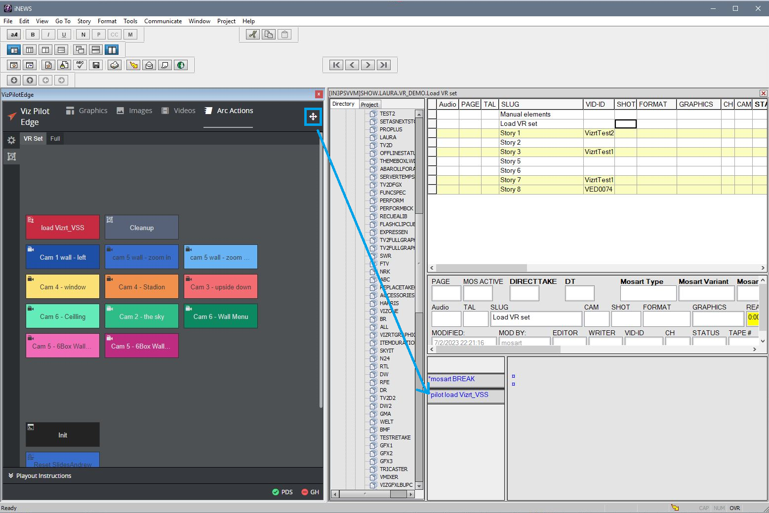 In this example, a Viz Arc action was added on a Break story to load a virtual set scene.