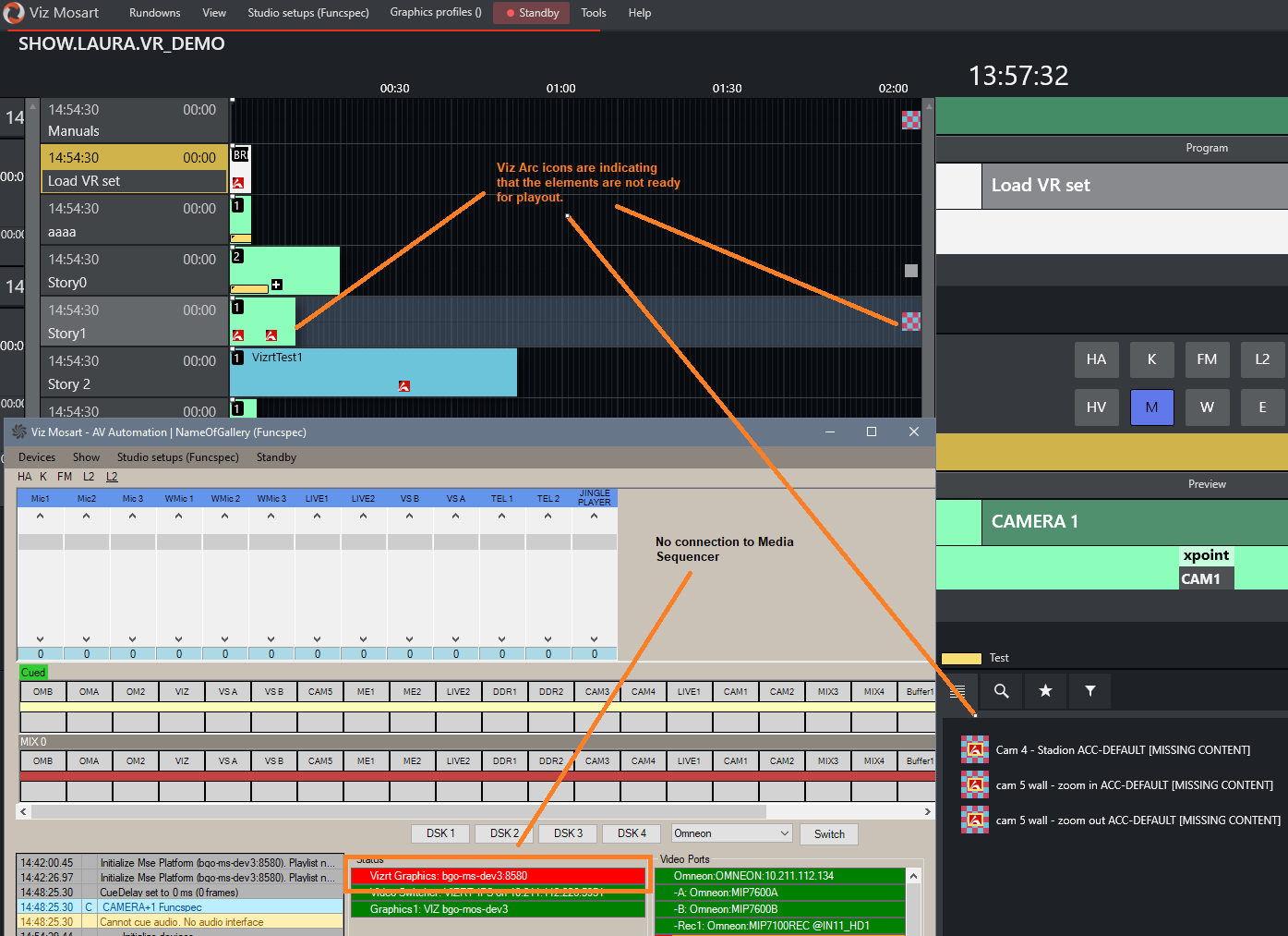 No loading status support: A virtual set loading on the MSE may take a considerable amount of time. Currently, Viz Mosart does not show the progress of the loading status or when it is ready for playout.