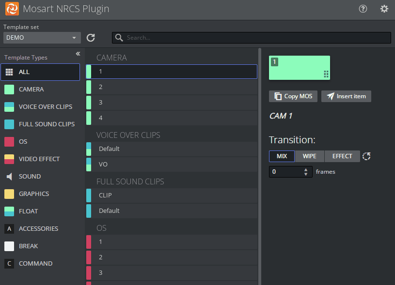The NRCS Plugin is one of the Mosart Web Apps. It delivers the functionality previously provided by the legacy Viz Mosart ActiveX Plugin.
