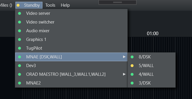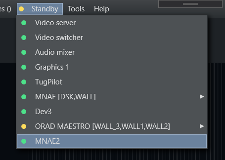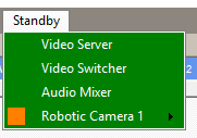 Once in state standby, all Viz Mosart commands sent to the selected equipment are disabled, until the device is re-enabled from this menu.