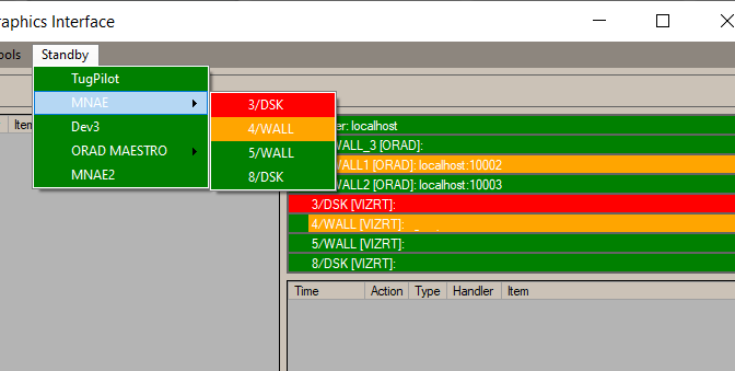 You can set any graphic controller or graphics engine configured in the Overlay Graphics interface to standby mode from the application's menu.