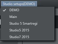 Provides a drop down list of the studio setups. Identical to 'Template Sets' in AV Automation in the Template Editor. See topic Show Design and Template Editor > Working with Template Sets in the Viz Mosart Administration Guide.