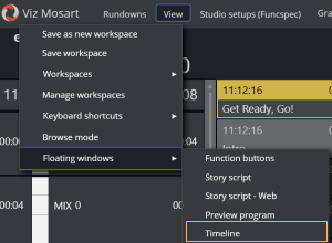 As a useful extension to a floating window, you can also view the current rundown details as a scalable read-only display of the Story info and Timeline, in a separate Mosart Web App.