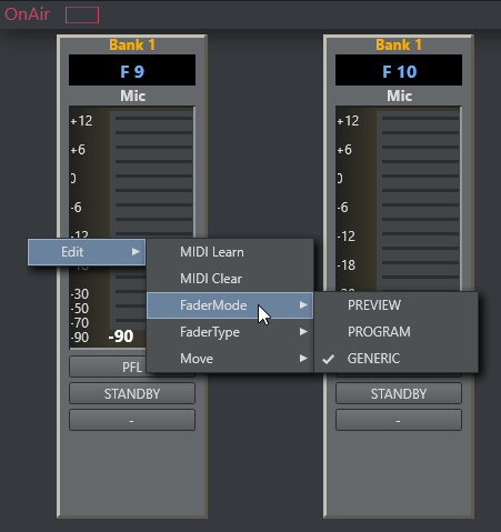 Configure fader operation properties by right-clicking on any fader, and selecting Edit.