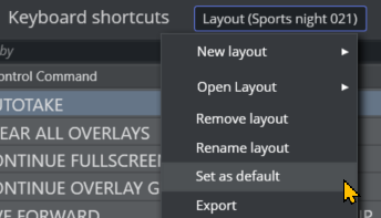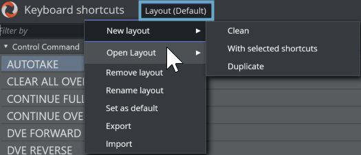 In the Keyboard shortcuts menu bar, left-click over the Layout (naming) text. of the menu.