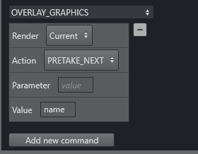 All Overlay Graphics control commands share the Render parameter. This parameter can be set to send the given command to a specific engine, or to engines which currently have active graphics on air.