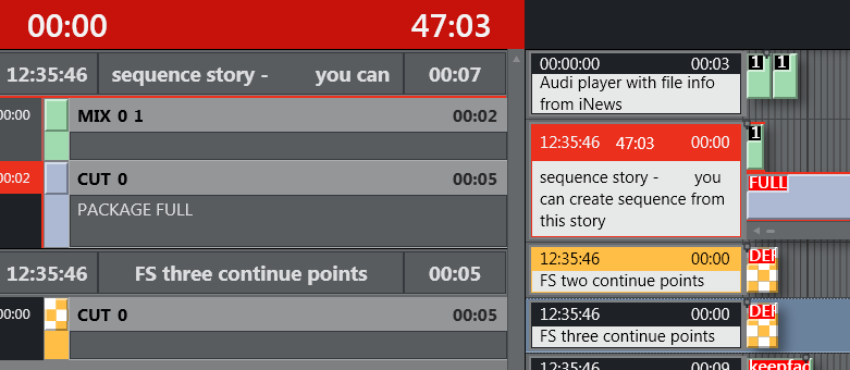 The top half (sequence story) displays the On Air story, (or the first story that will go On Air), highlighted in red.
