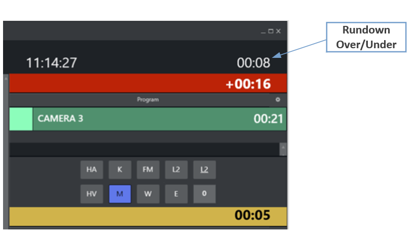 Over: indicates the number of seconds the show exceeds the planned duration.