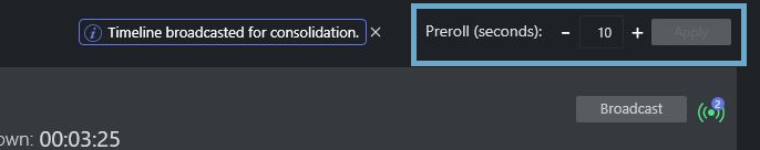 The duration of this pre-roll is configurable, usually around 10-15 seconds. The pre-roll period provides the system time to automatically initialize itself back to a stable, known status for all equipment like robotic camera positions, onscreen graphic elements, media clip availability, fader levels. It also provides a cue for the talent to prepare for beginning again.