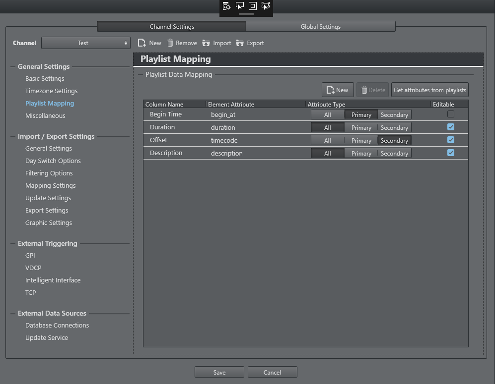 Playlist mapping defines how the current playlist (rundown) columns are mapped to attributes.