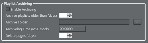 - Enable Archiving: When checked, archiving is enabled. When unchecked, no archiving will occur. Archiving will remove old playlists from the system and archive them in files.