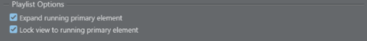 - Lock view to running primary element: if enabled, this option will scroll the view of the playlist to the current running group (primary element) to the top whenever the primary element is changed.