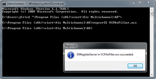 - Change directory to Viz Multichannel’s AX folder (e.g. C:\Program Files (x86)\Vizrt\Viz Multichannel\Viz Multichannel ActiveX)