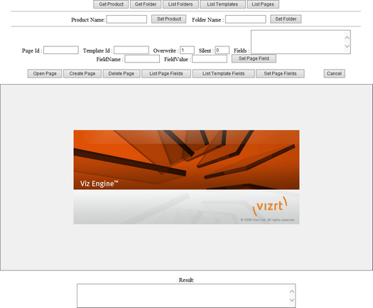 - Open the VizrtActiveXTestPage.html file in Internet Explorer.
