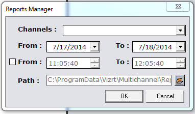 - Select the Path where the text file report will be saved. The default path used is %ProgramData%/Vizrt/Multichannel/Reports (i.e. normally C:\ProgramData\Vizrt/Multichannel/Reports) but if required you can select another location to use.