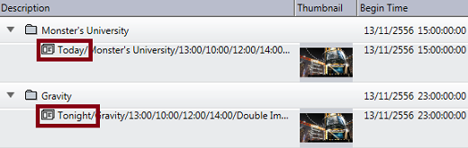 - Date: Date is the default setting for attribute begin_date_formatted. It uses Next, Today, Tonight and Tomorrow states to define date. To represent program which is scheduled for the days later, it symbolizes the date of corresponding playlist as: At dd/mm/yyyy
