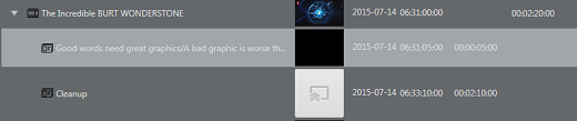 The layout and visibility of the playlist columns can be customized by drag-and-drop and by right-clicking one of the columns to select or de-select them. Secondary events that have been edited will have a color indicator in the left side of the edited row.