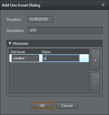 • Add Live Event: Adds a live event.