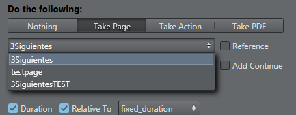 - If all conditions for the rule are met, the rule will be acted upon and you can specify what should happen: do Nothing, insert a specific Page, a predefined Action or a Pilot Data Element. Clicking on the Page, Action or Pilot Data Element button will enable a dropdown list where you can select the appropriate element as shown in the screenshots below: