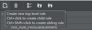 Rules can be grouped into a hierarchy with children and siblings. Hover the cursor over the create rule icon to see the options: CTRL + click to create a child rule and CTRL + SHIFT + click to create a sibling rule: