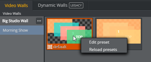 Right-click a preset in the Videowall Tab in the Sources area and select Video wall Designer.