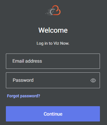 Type the Viz Now address https://now.vizrt.com/. A log in menu appears.