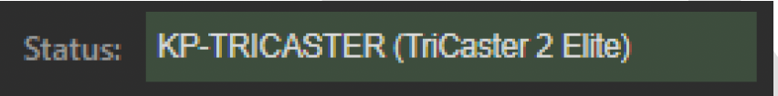 Ensure the TriCaster is currently in a session. If the connection is successful, the name and model of the TriCaster system will appear in the Status field.