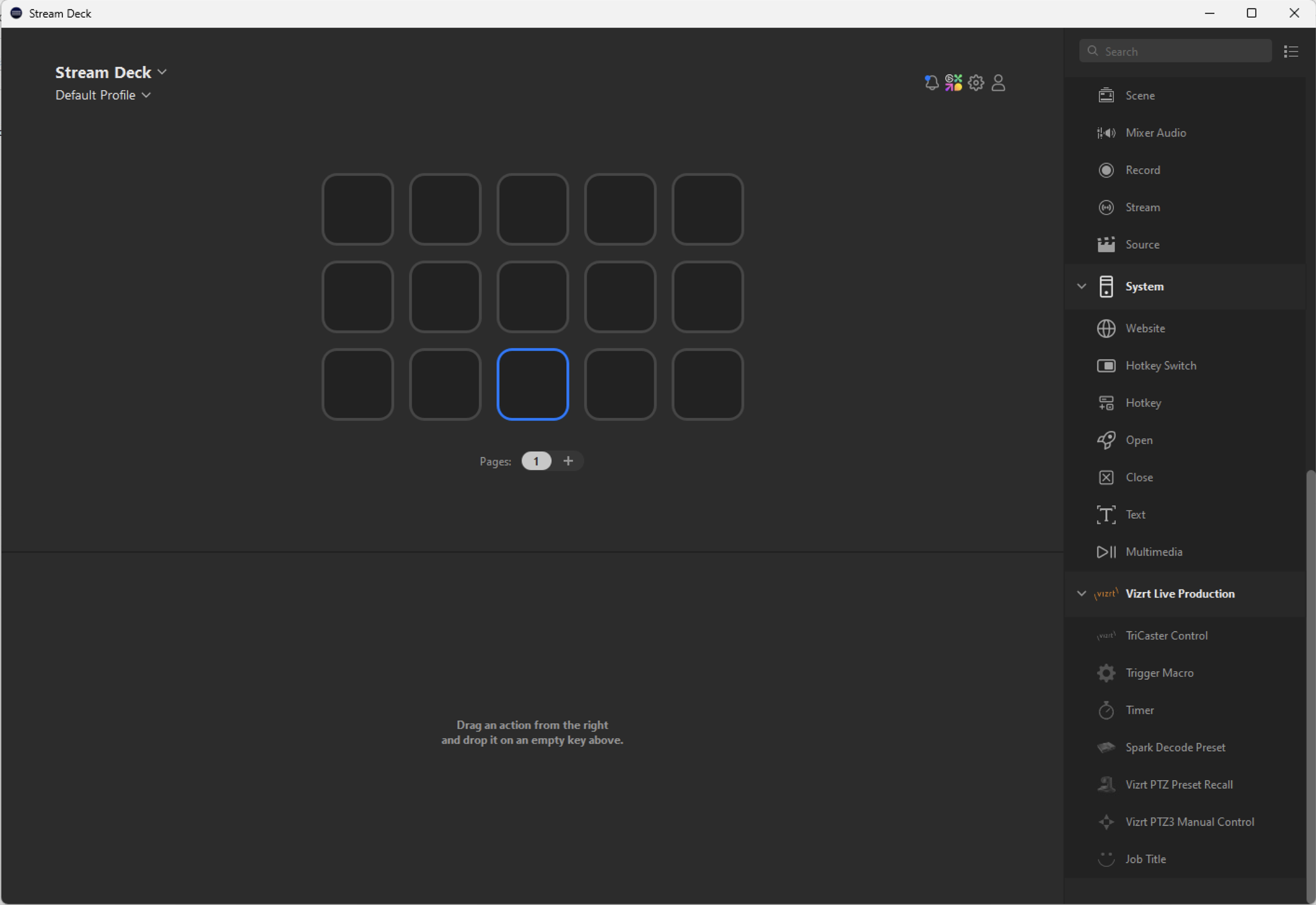 Drag and drop the TriCaster Control feature button on any Stream Deck button.
