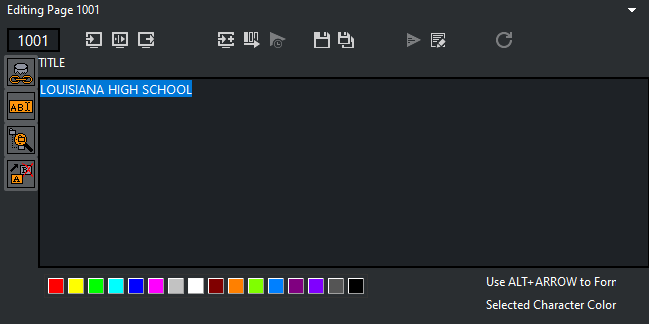 To change the color of a character or selected characters, click a color in the color palette, or hold the ALT key down while using the right and left arrow keys to switch between the available colors.