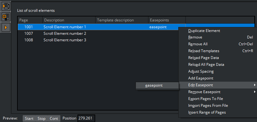 Add Easepoint: Opens the Easepoint Editor which allows the user to add an easepoint to the selected scroll element.
