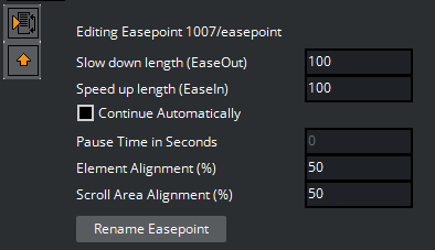 The Easepoint editor allows ease point parameters to be set for a scroll element.
