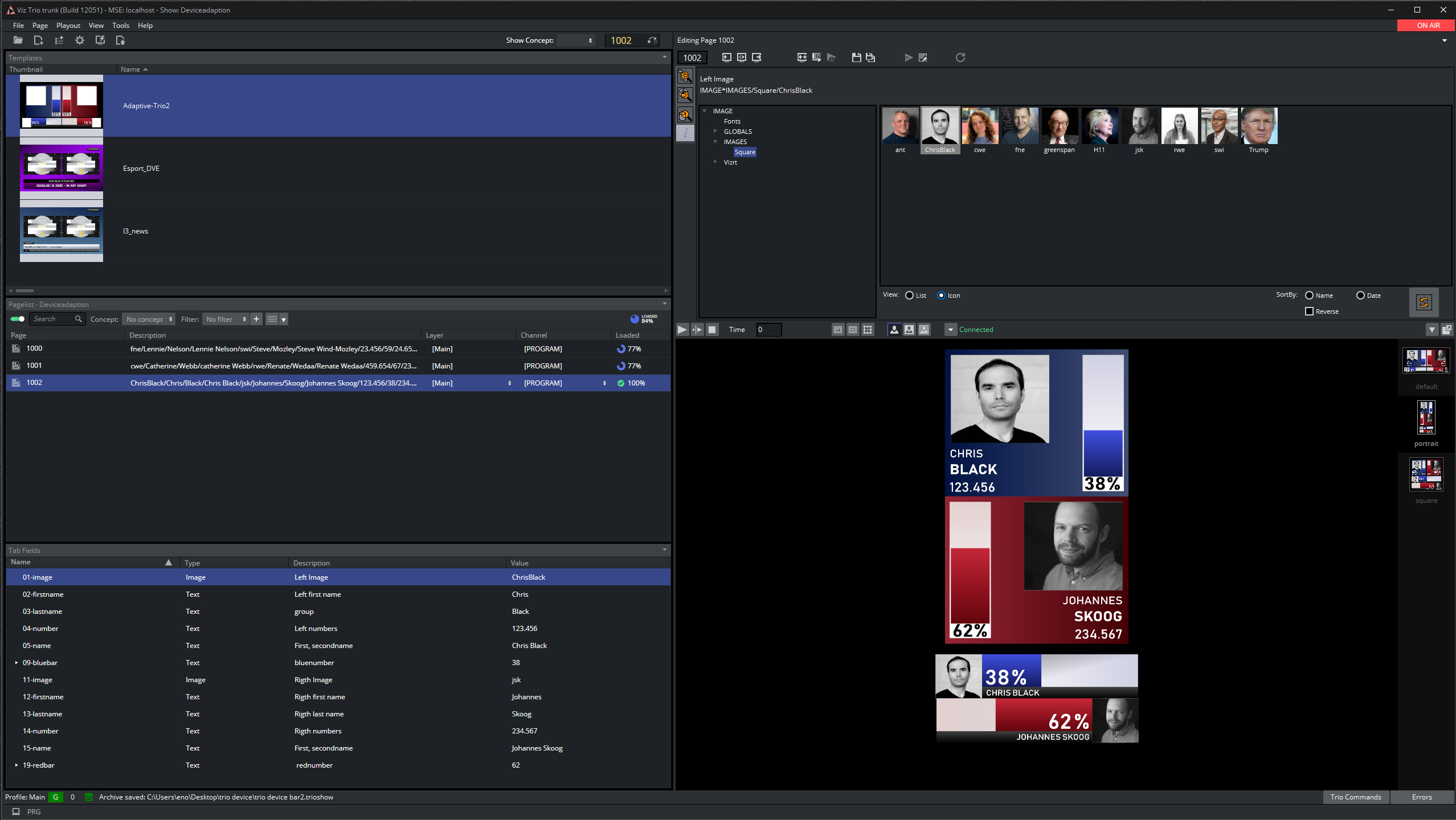 5. Read the page by double-clicking it or issuing a Viz Trio command. The local Viz engine console then triggers an OnPreview script event.