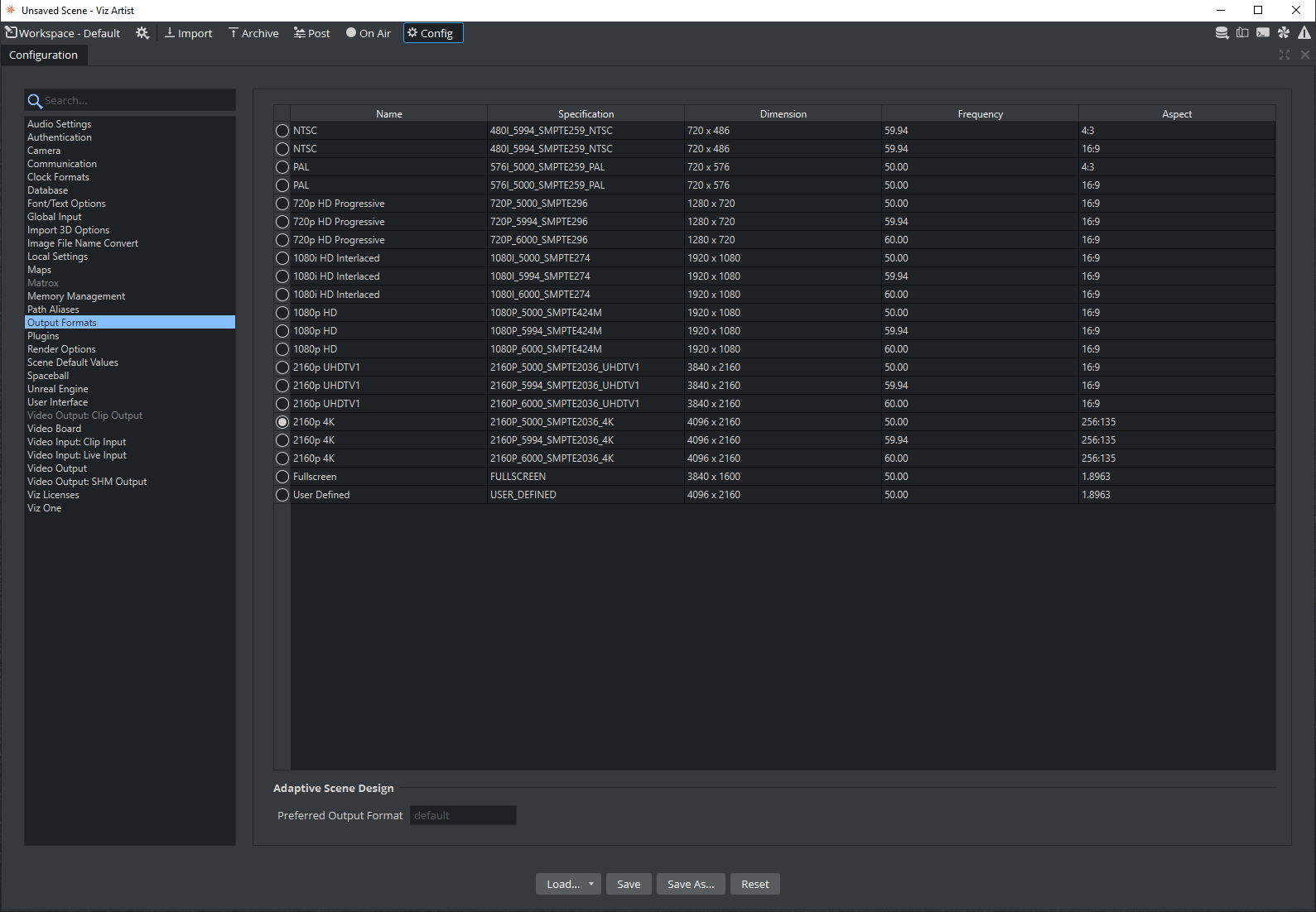 Before importing a scene in Viz Trio, setting the adaptive format for the output engines can be done directly in the user interface of Viz Artist or in Viz Engine.