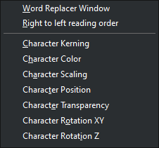 To perform character-specific changes, right-click to open the text editor’s context menu, and select one of the options.