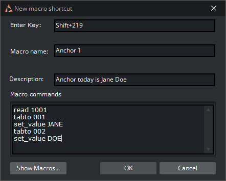 With Viz Trio you can assign macro commands and scripts to shortcut keys on either a show-by-show or global basis.