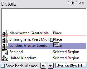 Entries in the Details list are drawn on the map from the bottom of the list upwards, and you can change the order to determine how features overlap.