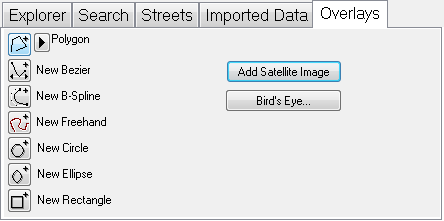 The Overlays tab on the Contents panel allows you to add shape overlays to the map layer, either by drawing them, or by tracing map features: