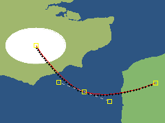 Hold down CTRL and drag from a point on the animation path to extend tangent handles from that point and create a curved animation path: